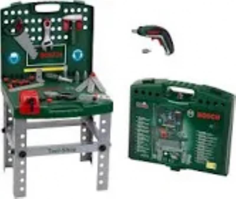 1 établi en 2 parties 4 pieds 4 pièces grise pour mettre entre les pieds 9 grosses vises avec 9 bouolons pour fixer les pieds et presse d'établi 1 presse d'établi 1 scie 1 pince 1 tournevis avec 2 embouts 1 clé à molette 1 marteau 1 percesuse-viseuse avecf 2 embouts 4 crochets 2 clous 8 pièces grises ( 2 petites, 4 grandes, 2 équerres) 10 vises (5 grandes et 5 petites) 10 boulons |