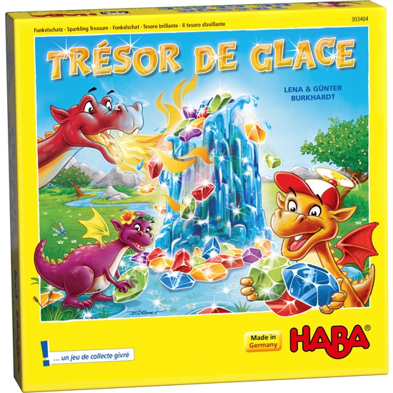 partie inférieure avec 4 parois plateau de jeu 4 jeunes dragons 90 pierres de 5 couleurs 9 anneaux glacés 1 tuile bloc de glace 5 tuiles papa dragon |