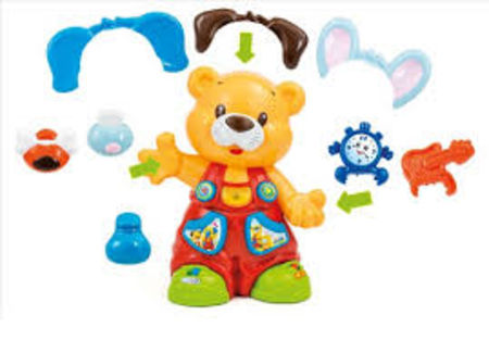 ourson 3 oreilles 3 museaux une guitare une horloge |