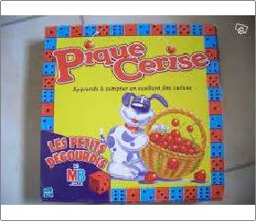 1 mode emploi 1 plateau jeu 4 paniers 1 flèche bleue 40 cerises |