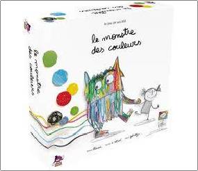 1 plateau de jeu 1 pion monstre des couleurs 1 pion petite fille 1 dé 8 bocaux pour y ranger les émotions 2 étagères pour les bocaux 5 jetons pour chacune des émotions 1 mode d'emploi |