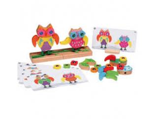 1 sac en tissus 6 cartes avec 1 support bois 2 socles en bois 7 grandes pièces 27 petites pièces |